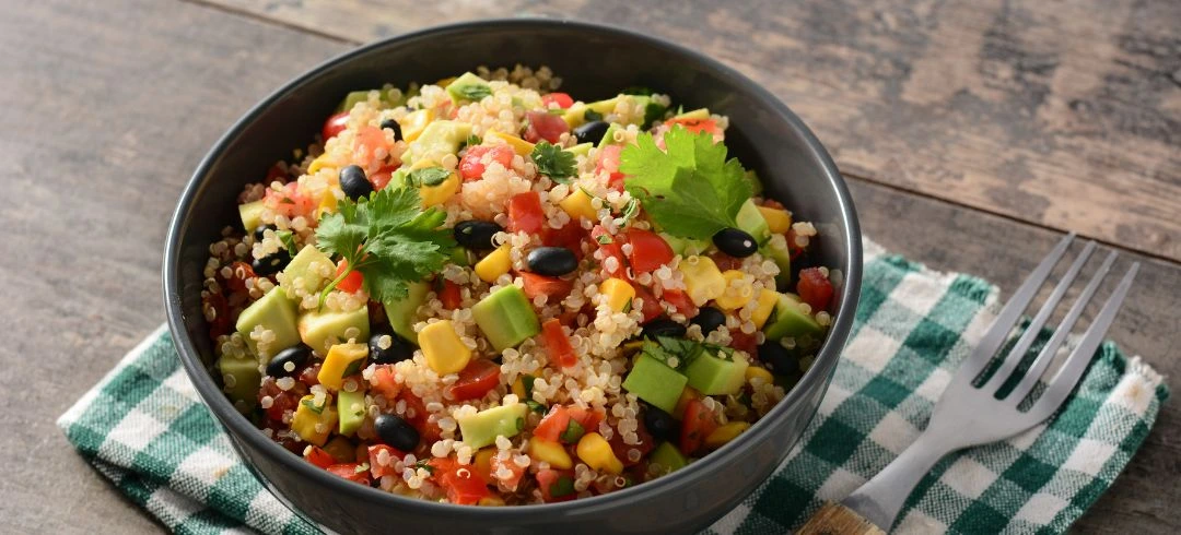 Ensalada fría de quinoa, aguacate y pollo: perfecta para recuperar energía y regenerar músculos tras el entrenamiento.